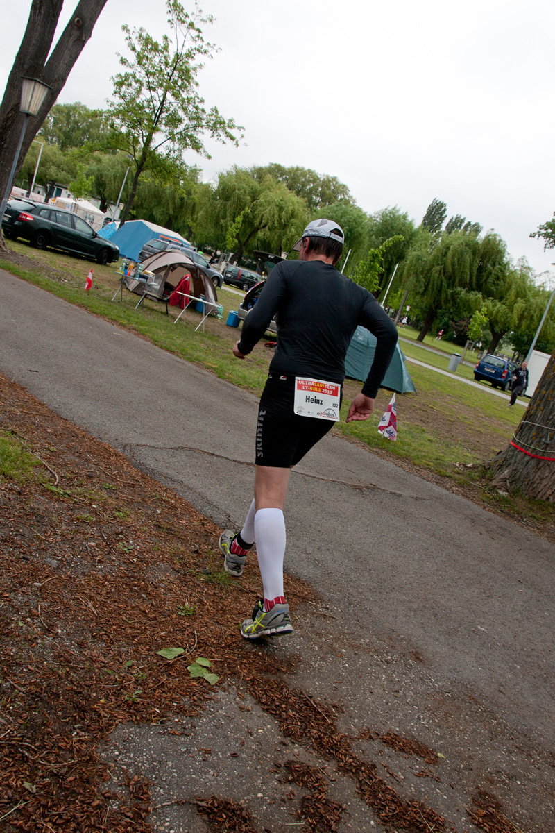 Langsam loslaufen, mit einem Schnitt von rund 6:30 min/km, immer wieder kurze Pausen um Verpflegung aufzunehmen oder um die Kleidung zu wechseln. Oder auch nur um etwas Motivation von meinen beiden Betreuerinnen, von Gaby und meiner Tochter Christina, zu bekommen.