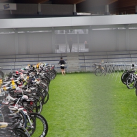 Dann meinen Platz #1271 für das Bike gesucht und schließlich noch die beiden Bags für Run und Bike auf den Wechselständern deponiert.